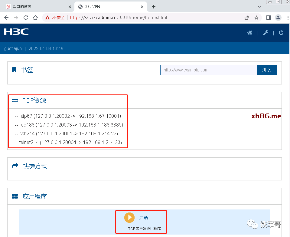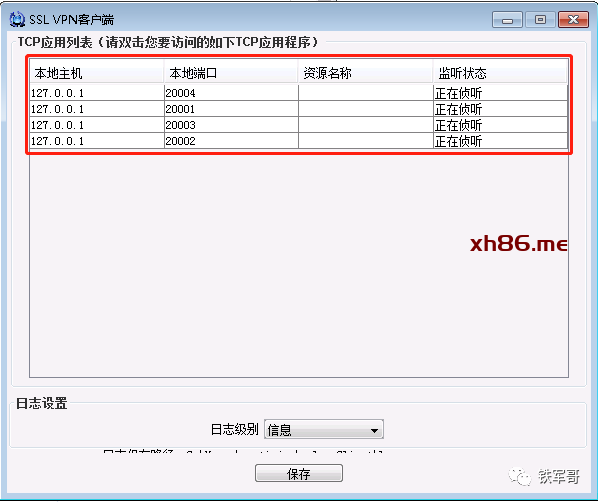 SSL VPN客户端启动成功之后,就可以看到TCP应用列表了。