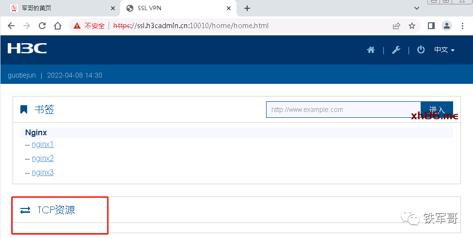 然后就可以测试访问云内业务了,在浏览器中输入以下链接地址: