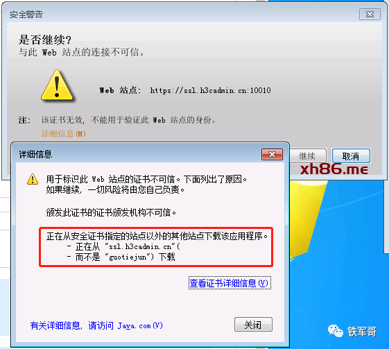 运行时可能会报警,这是因为我使用的是自定义的证书,Java检测到证书颁发机构不一致。这种情况我是了解的,直接忽略即可。