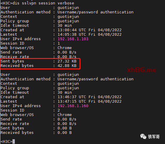 查看SSL VPN的用户会话信息。