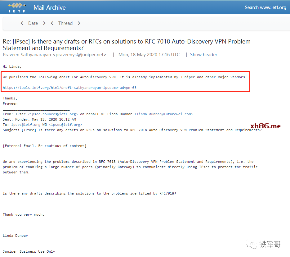 从IETF的交互邮件中我们可以看到,目前ADVPN的协议结构还只是草案,并且已经于2014年4月份过期了。但是邮件介绍到了Juniper是方案的主要起草厂商,并且已经完成规模化应用。理论上讲,应该用Juniper的设备来验证,才是最科学的,但是能力有限,只能用华三的了。