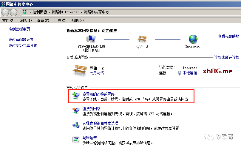 配置电脑端的连接,在“控制面板→网络和Internet→网络和共享中心”中,点击“设置新的连接或网络”。