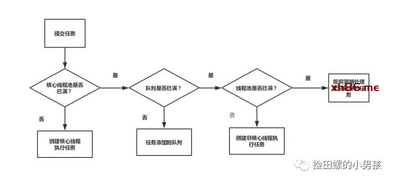 提交一个任务,线程池里存活的核心线程数小于线程数corePoolSize时,线程池会创建一个核心线程去处理提交的任务。 -