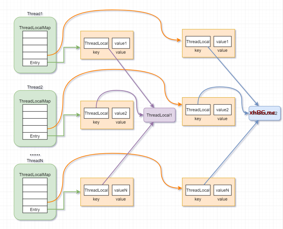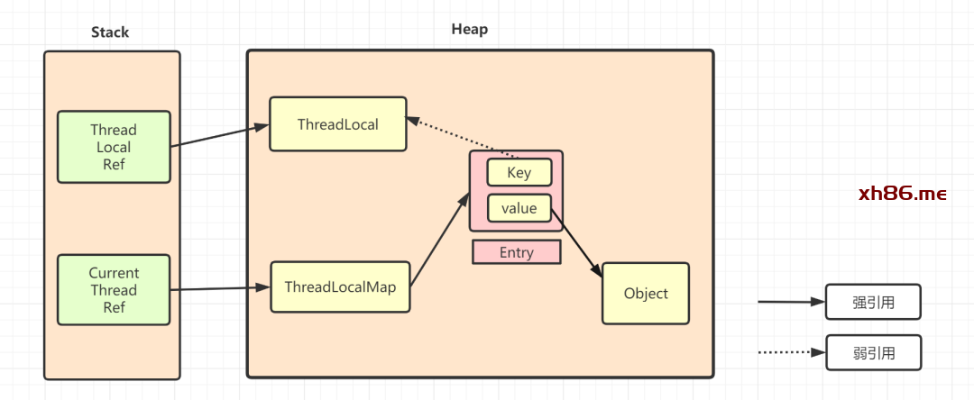 先看看一下的TreadLocal的引用示意图哈,