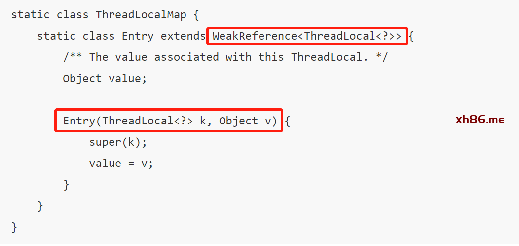 ThreadLocalMap中使用的 key 为 ThreadLocal 的弱引用,如下