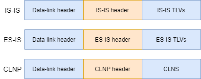 CLNP :无连接网络协议,类似 IP 协议,是 OSI 模式下的 CLNS 的网络协议。有时也叫 CLNS 协议。IS-IS 、ES-IS 、CLNP 都是网络层协议,直接封装在数据链路层帧内。而 TCP/IP 的 OSPF 报文是封装在 IP 报文里的。