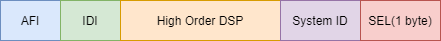 DSP :相当于 IP 地址的子网号和主机地址。由 High Order DSP 、System ID 和 SEL 组成。High Order DSP 用来分隔区域,System ID 用来区分主机,SEL 用来表示服务类型。