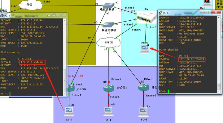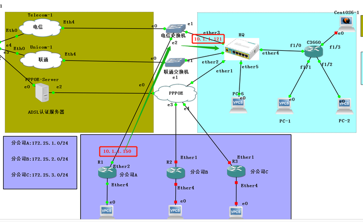 分公司A 假定公网IP:10.1.1.150 内网网段:172.25.1.0/24