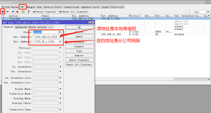 总部假定公网IP:10.1.1.121 内网网段:192.168.11.0/24