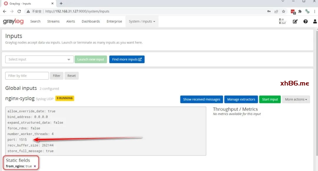 可以在Input中看到nginx-syslog 1515端口的一个input