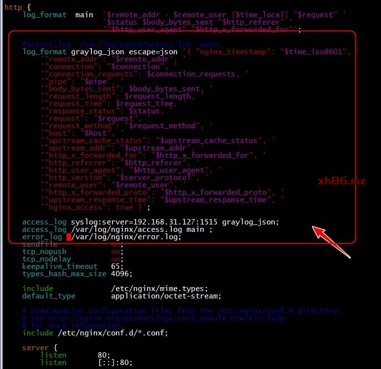 access_log syslog:server=192.168.31.127:1515 graylog_json;