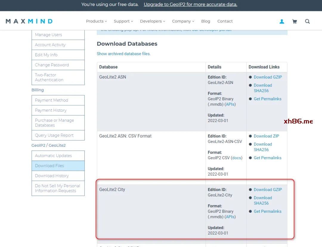1、maxmind官网下载GeoLite2-City的mmdb文件