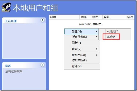 在右侧空白处,新建本地组,如下图所示: