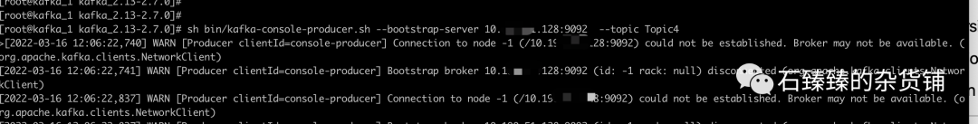 sh bin/kafka-console-producer.sh --bootstrap-server 10.xxx.xx.128:9092 --topic Topic4