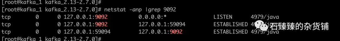 当然,如果你这台机器刚好还是Controller的话,除了了LISTEN, 还能看到ESTABLISHED状态的连接,因为Controller也会给这台Broker建立连接发起请求的,比如通知Broker更新元信息之类的。