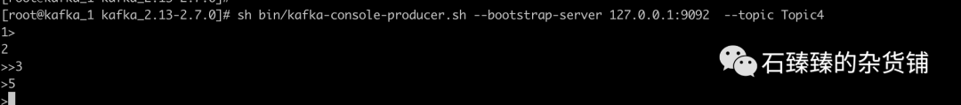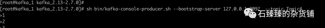 sh bin/kafka-console-producer.sh --bootstrap-server 127.0.0.1:9092 --topic Topic4