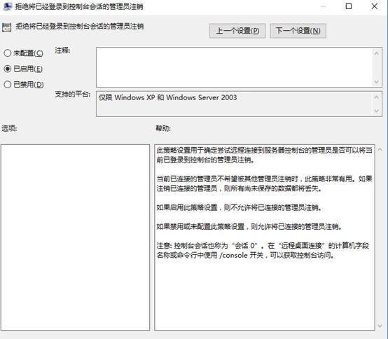 拒绝将已经登录到控制台会话的管理员注销—选择启用 ( 防止恶搞 T 管理员)
