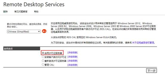 管理工具—远程桌面服务—远程桌面授权管理器,选择服务器名称后点击右键,将”属性”中 的”安装方法”设为”Web 浏览器”