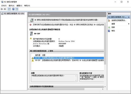 管理工具—远程桌面服务—RD 授权诊断程序,查看当前服务器为没有授权