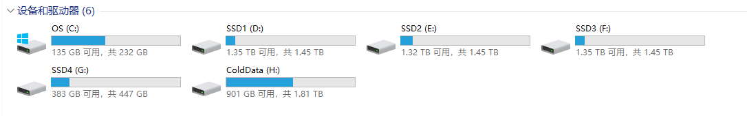 共享存储1.2TB 放F盘,3台ESXi 主机放D盘,共享存储里面分了2个LUN出来,可以做存储迁移,VC磁盘格式是精简磁盘