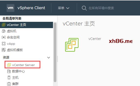 点击左侧资源下面的vCenter Server