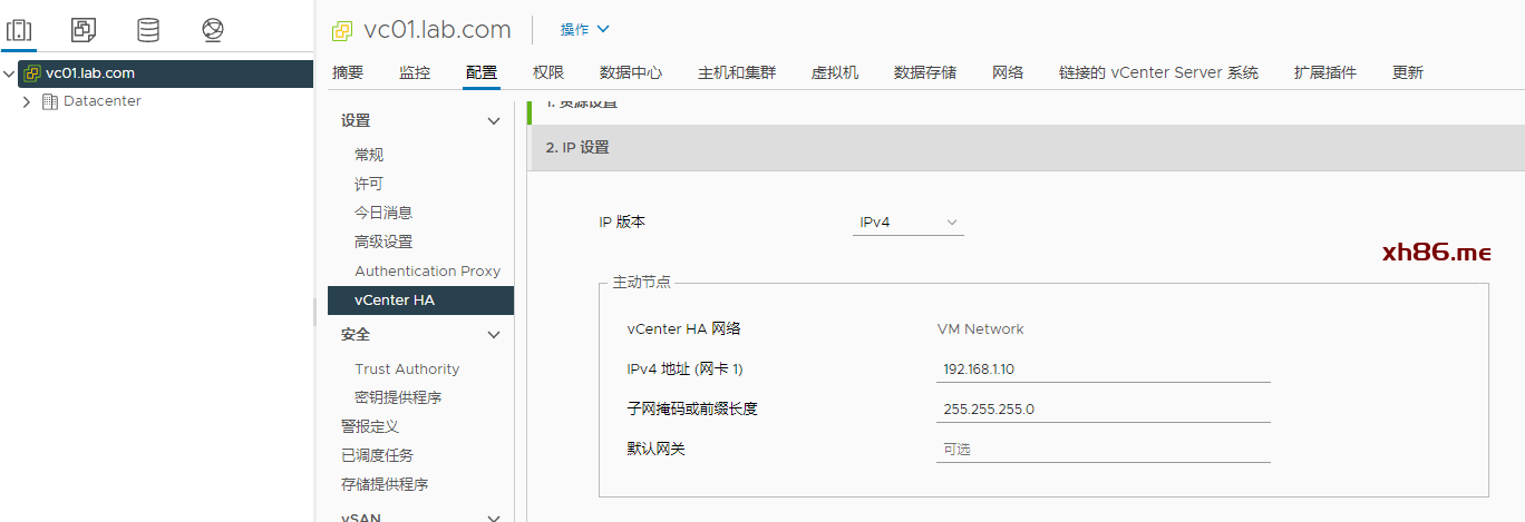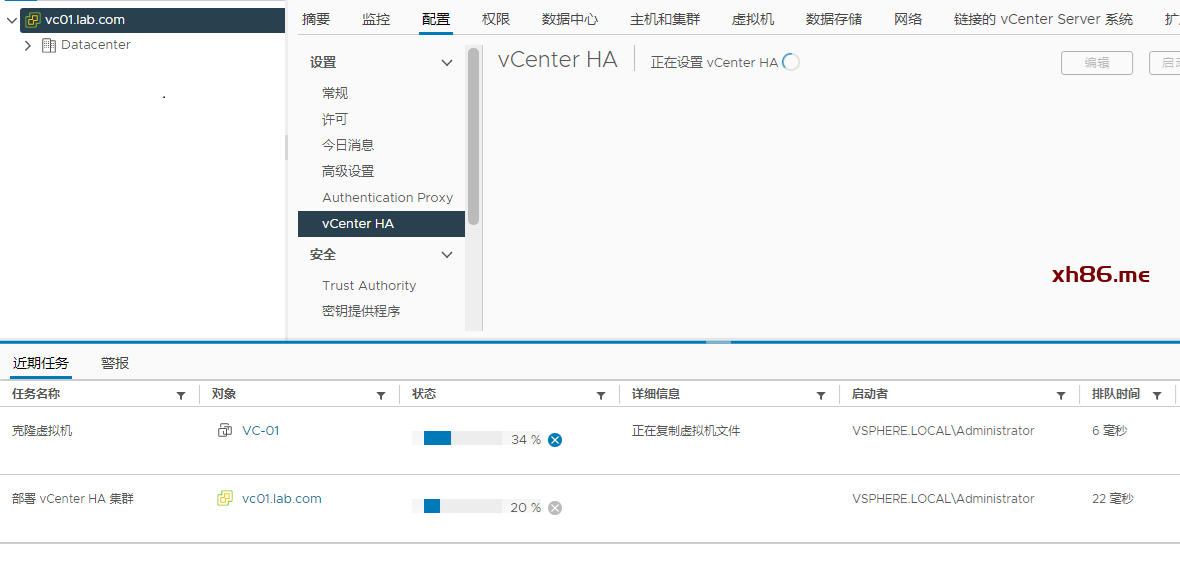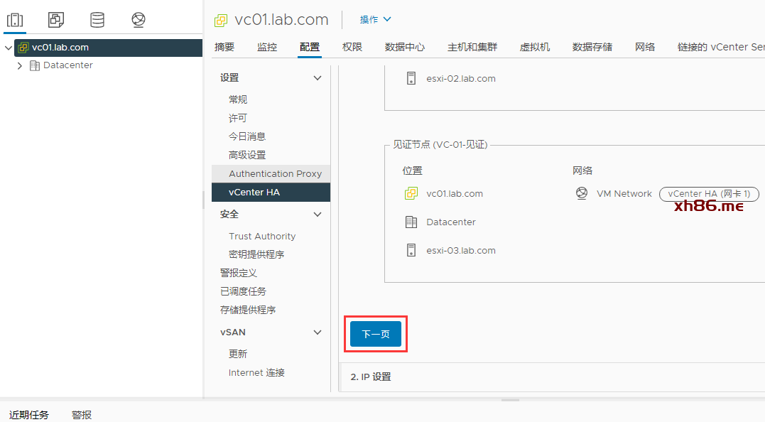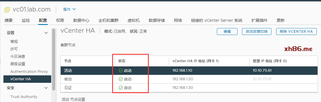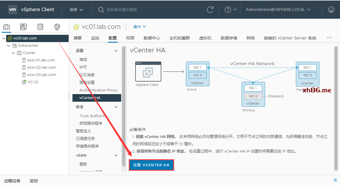 进来之后点击设置vCENTER HA