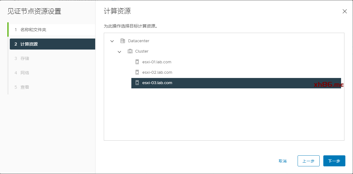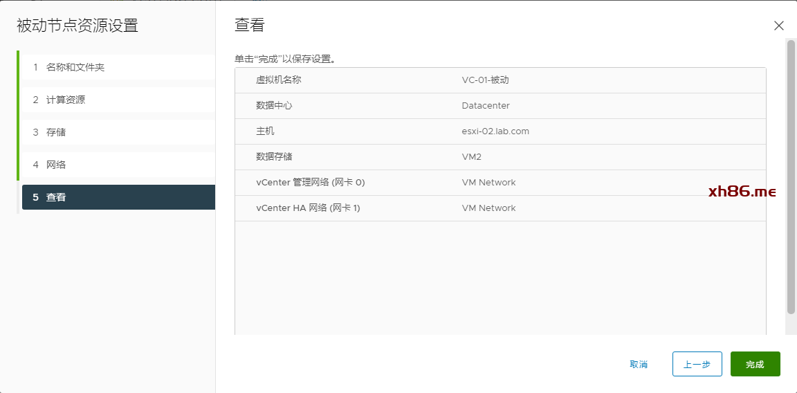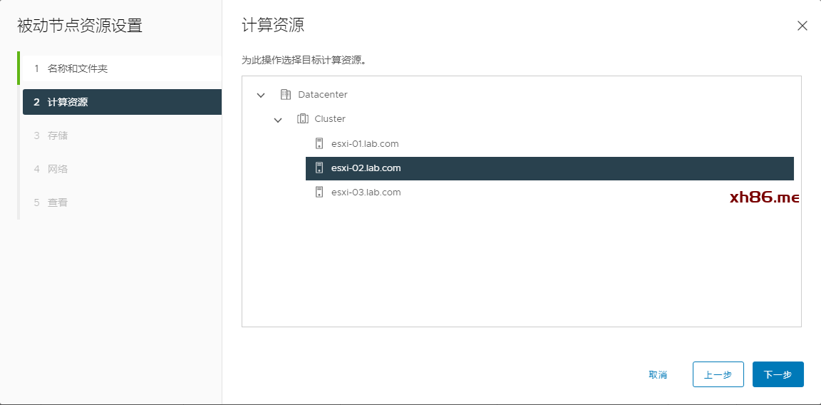 选择群集节点,VC-01是在ESXi-01上面,所以被动节点放在02节点上面
