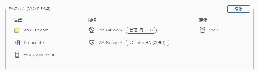 VC-01放在存储VM1,被动节点放在VM2