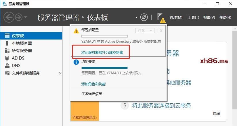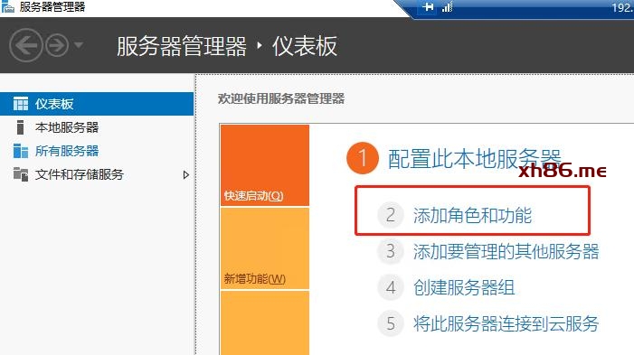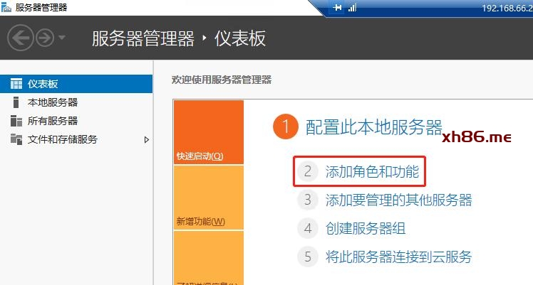 登陆成功后点击“服务器管理器”-“添加角色和功能”