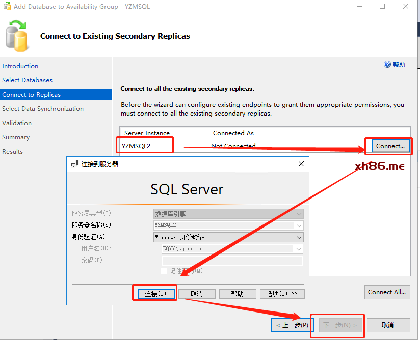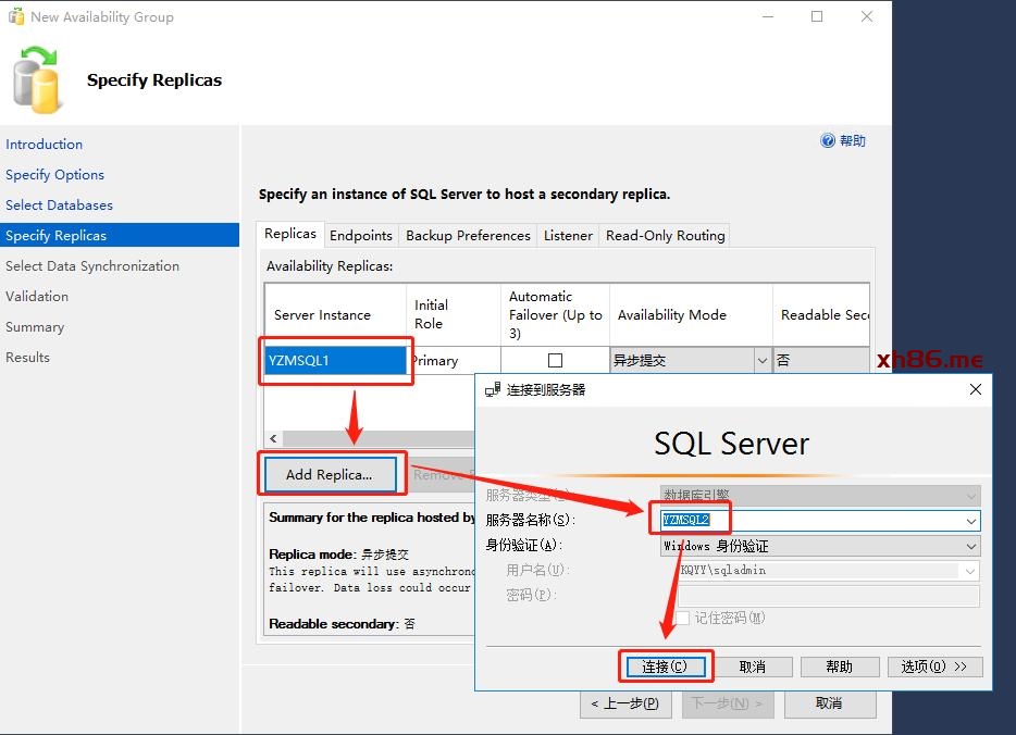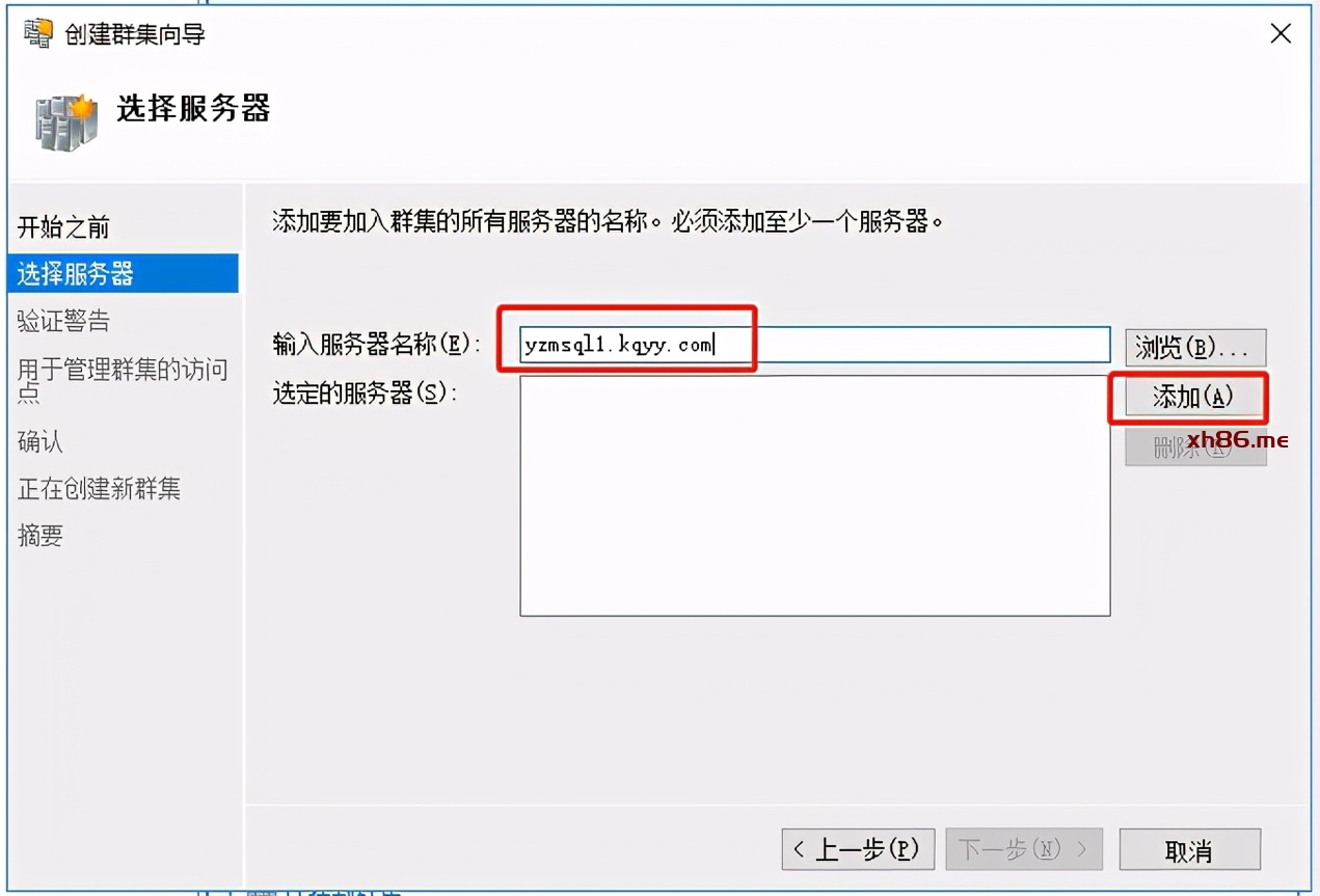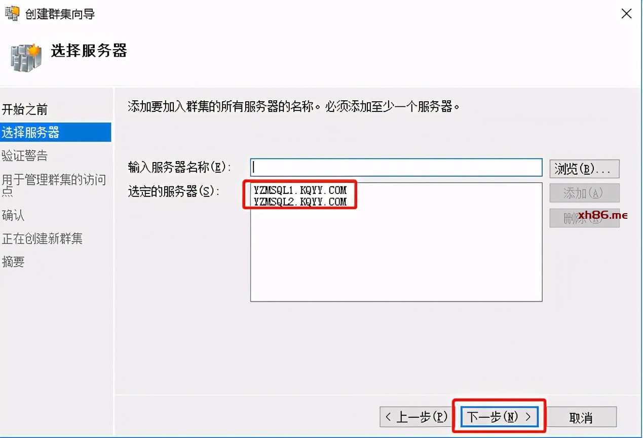 分别输入SQL1和SQL2两台服务器的FQDN全称,点击添加