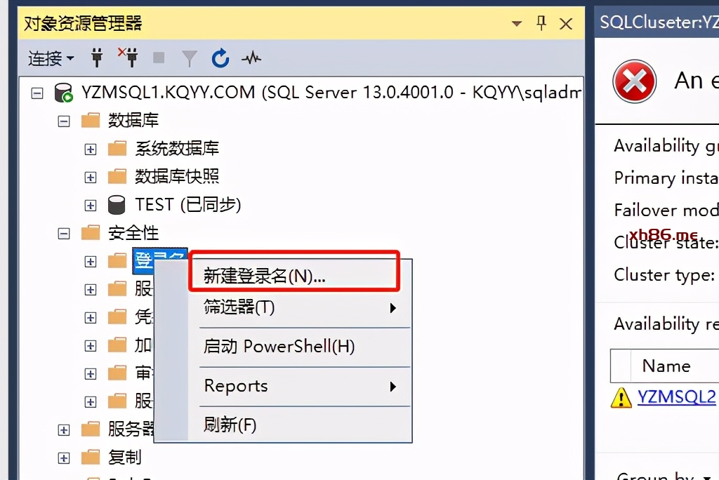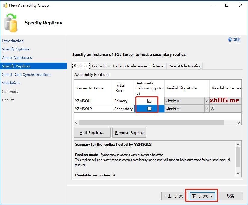 分别登陆到YZMSQL1和YZMSQL2上将SQL的“启用AlwaysON可用性组”功能给钩选上