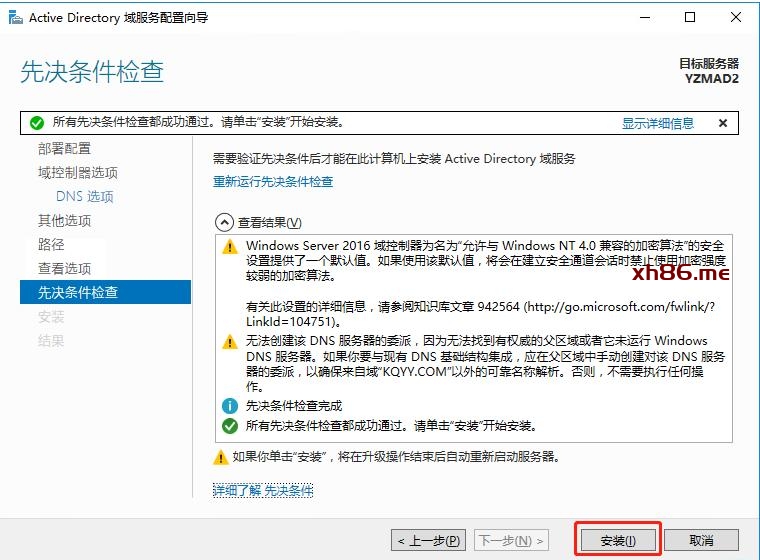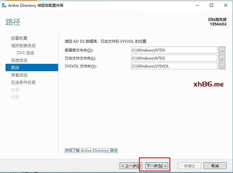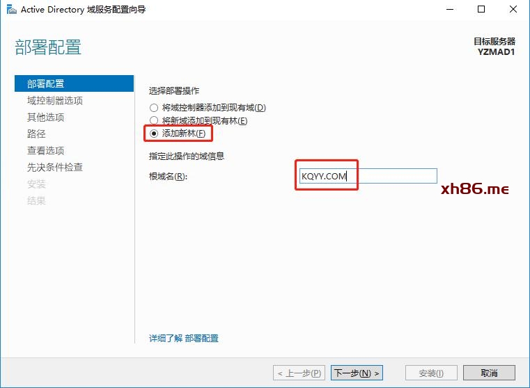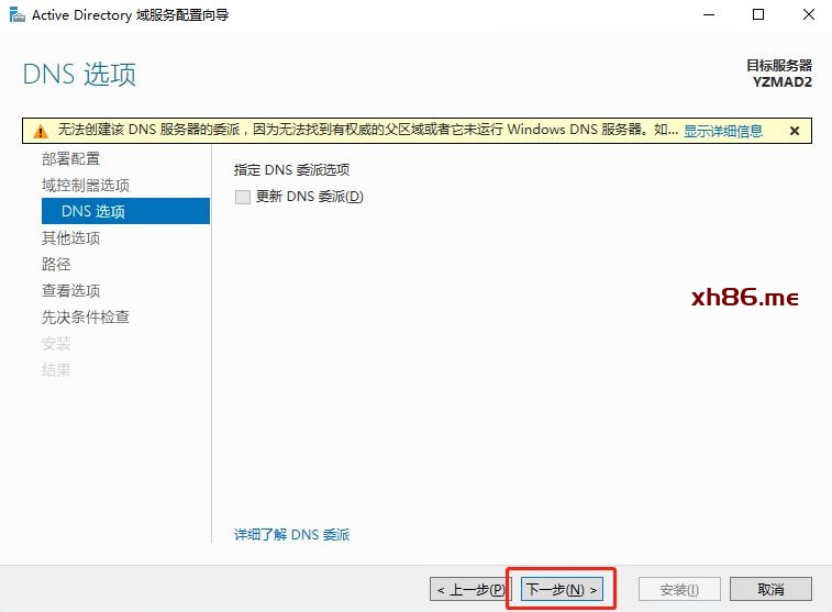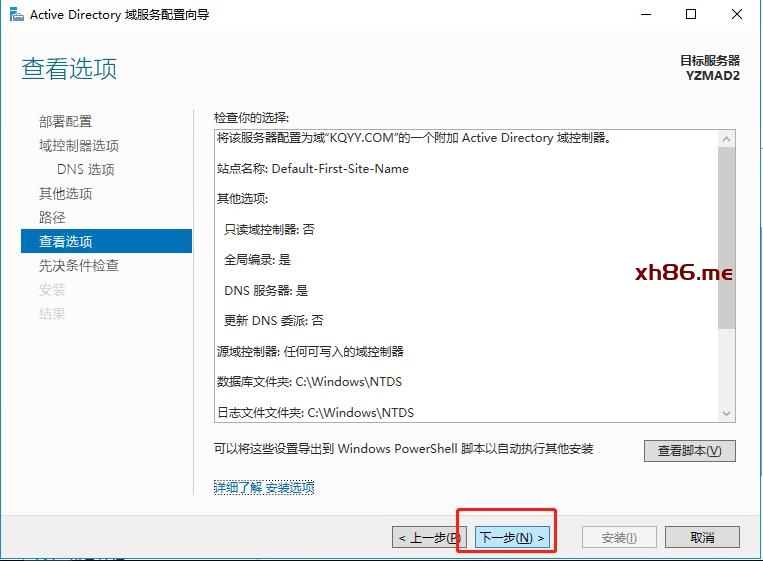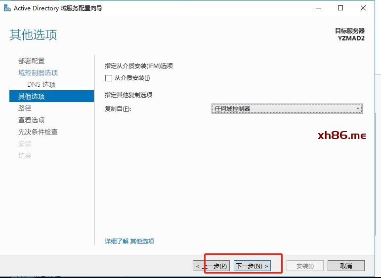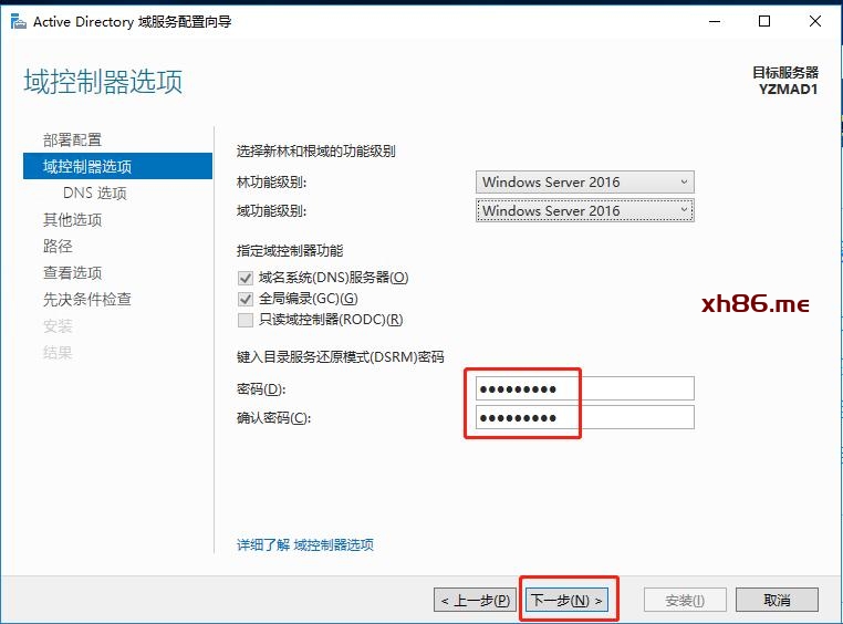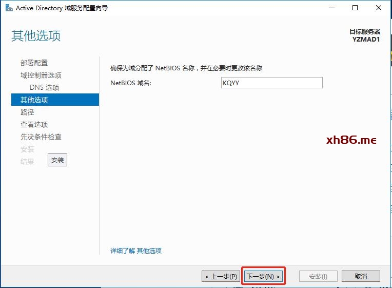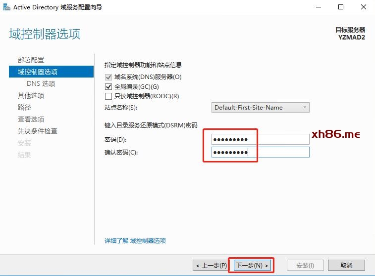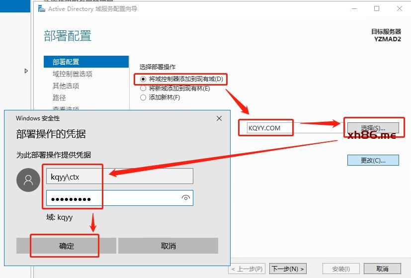 选择“将域控制器添加到现有域”,输入主域的域名,输入具有域管理员的一个域帐号: