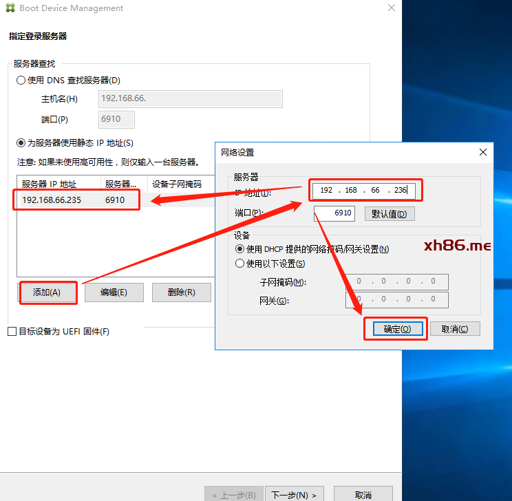 特别说明:由于现在存在着旧平台与新平台都处在同一个DHCP网段,无法同时将66和67选项分别设置指向两个平台上,所以我们新平台临时使用BDM的方式引导。