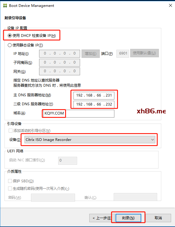 填写相关网络信息后,选择Citrix ISO项,点刻录