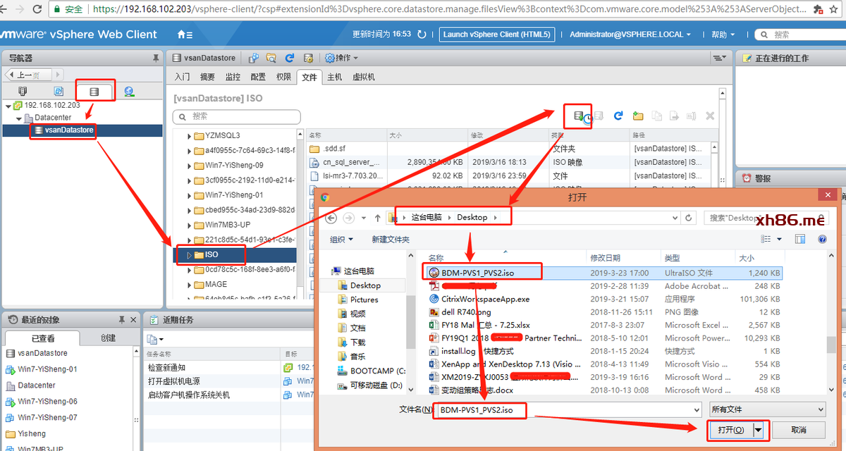 - 将Vcenter存储的ISO目录下的“BDM-PVS1.iso”(这个前面制作并上传上来的的BDM文件)文件挂载到这台母板机的光驱里
