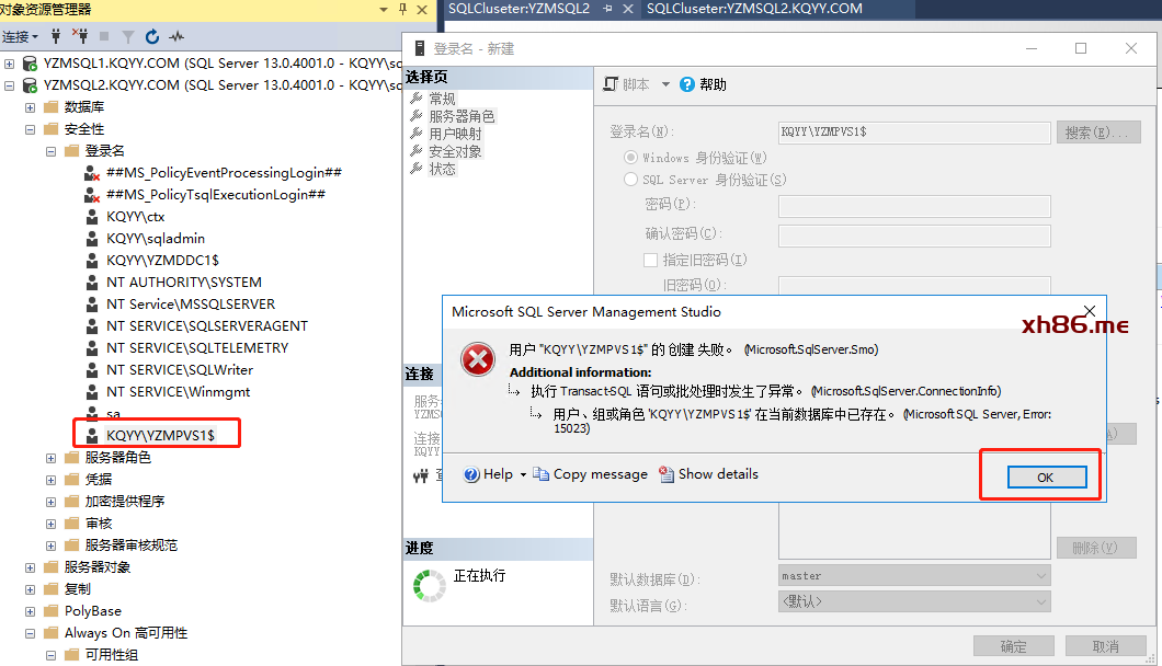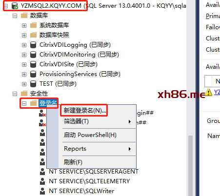 通常在配置完后,DDC和PVS只是和SQL1进行通讯,我们将SQL2加进来后,DDC和PVS并无权限访问SQL2,需要在SQL上做授权