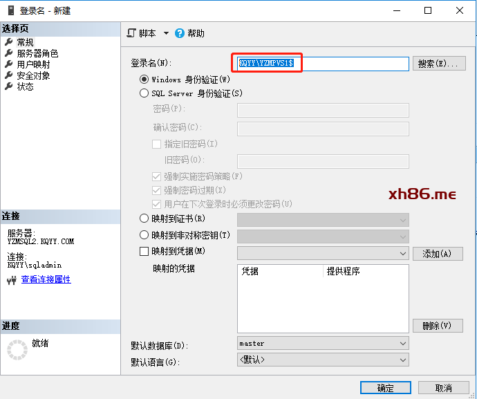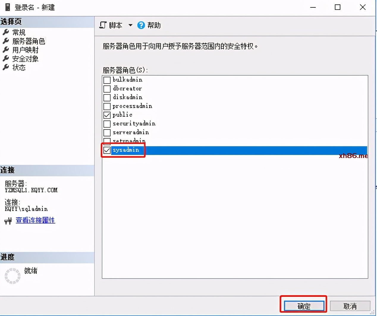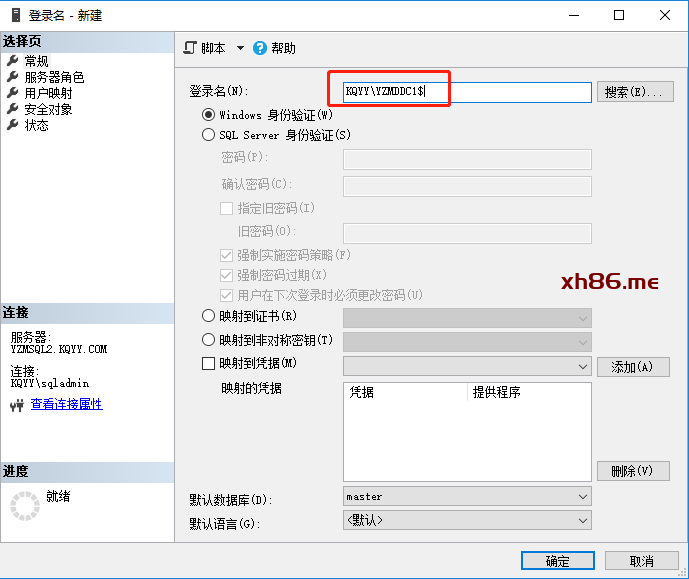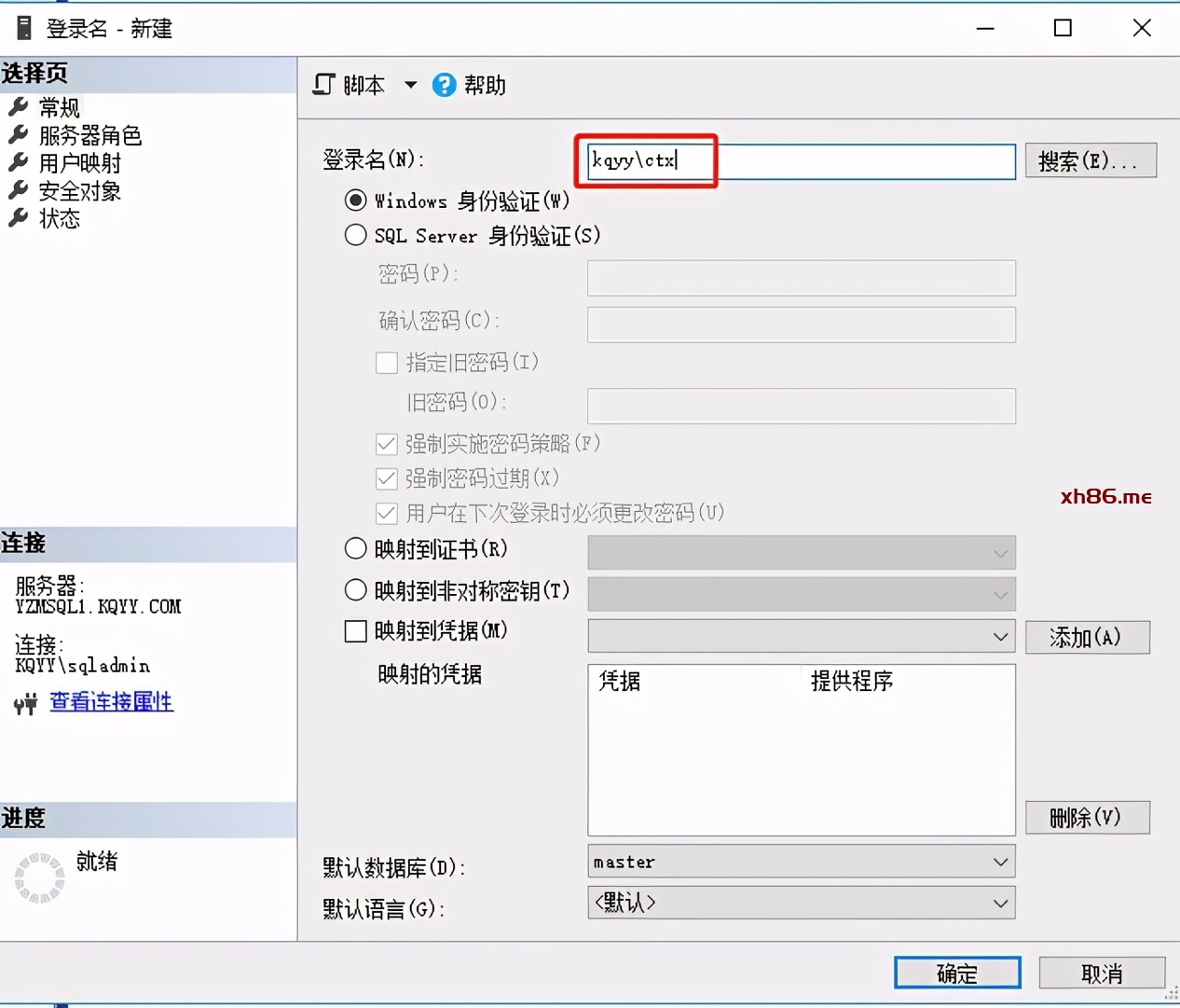 使用创建的SQLadmin帐号登陆SQL1数据库: