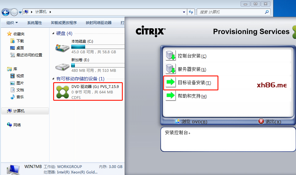 Windows7 IP地址配置为DHCP,加域,激活,安装常用的办公软件,再安装上Citrix VDA代理(这个代理 也可以镜像收集完再安装,我们这里就是放在镜像收集完再安装),最后再来挂载上PVS的ISO镜像来安装镜像收集工具。