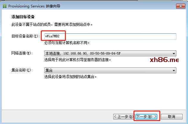 为目录设备命个名字,这样系统就会在PVS的集合是自动创建一个设备名称,下一步