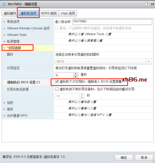 在Vcenter找到这台模板机,右键,编辑设置,修改开机的引导选项