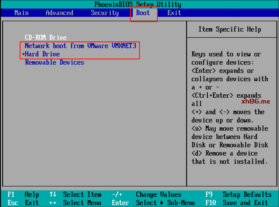 2、前两步有配置开机后启动到BIOS,这里已到BISO界面,将网卡启动移动到硬盘启动之前。