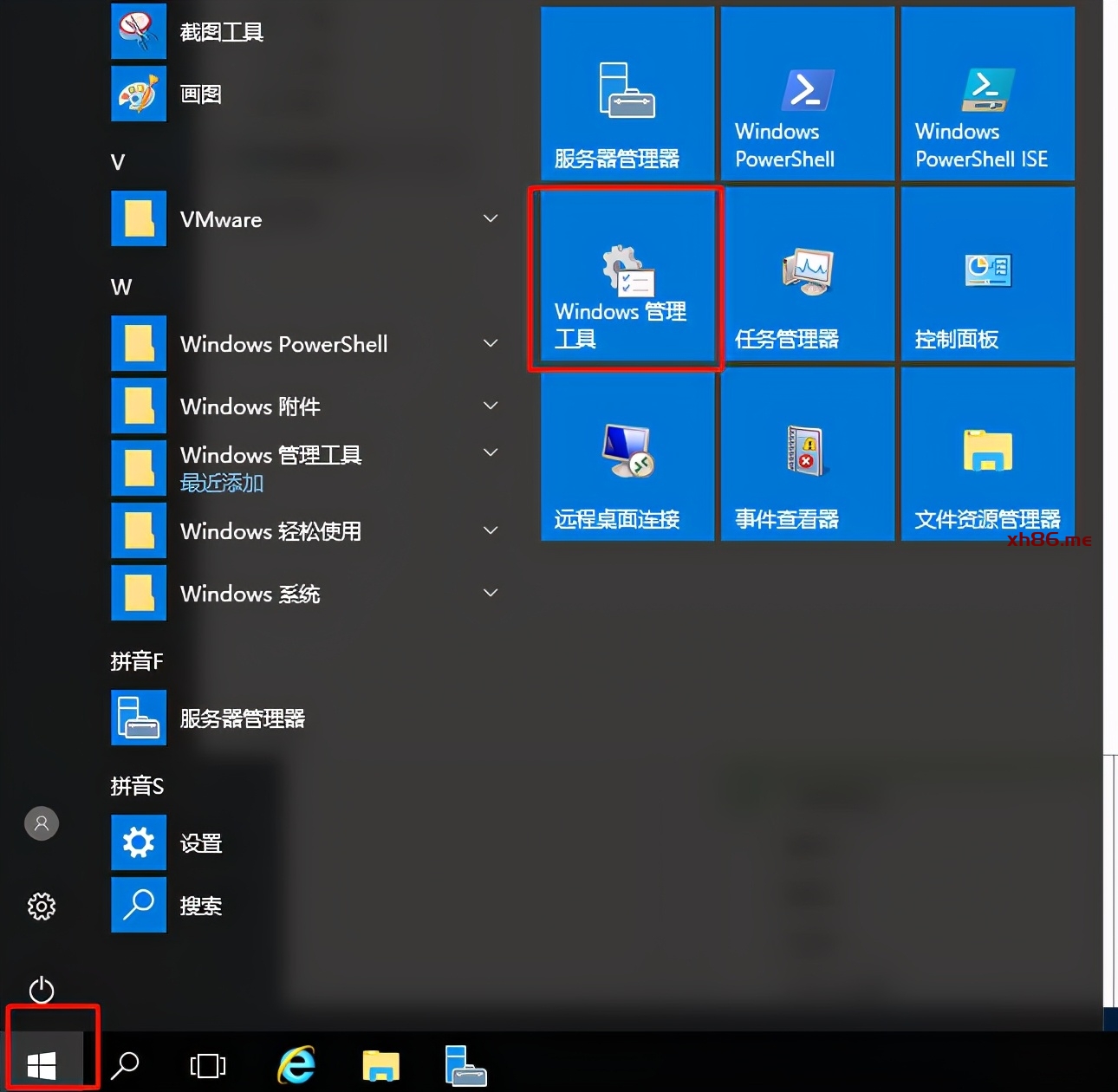 接上一章节,重启启完成后,点击开始菜单,Windows管理工具: