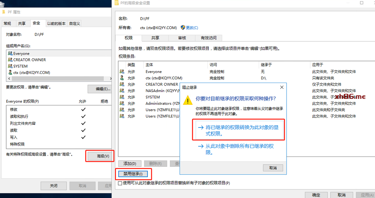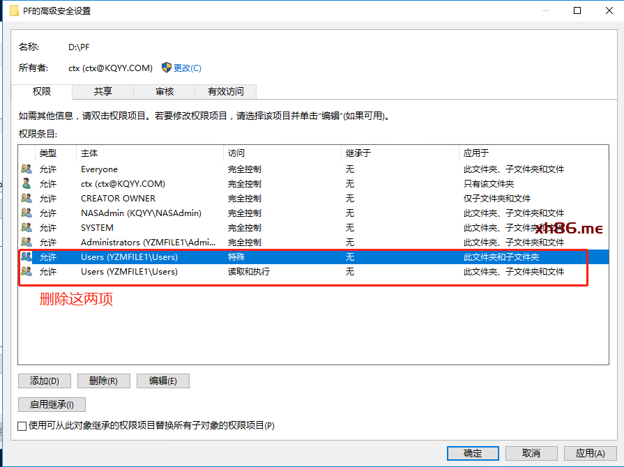 删除掉普通帐号的访问权限,不用担心普通帐号没权限,因为我们上面有创建Everyone的权限