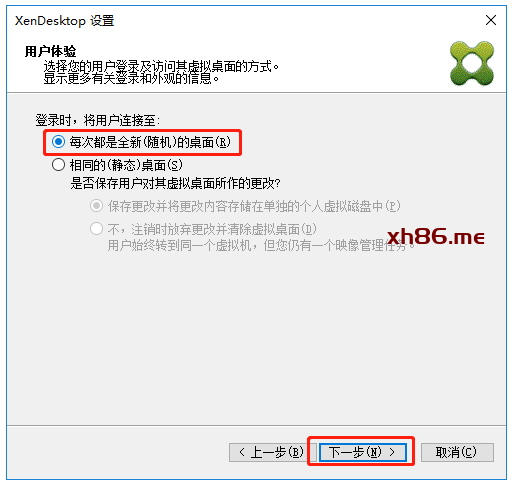 如果需要发布用户固定的桌面,则选择“相同的(静态)桌面”,这里的静态是指每个用户绑定在固定的一台虚拟桌面上,动态则是用户每次登陆都是随机的一台虚拟桌面。