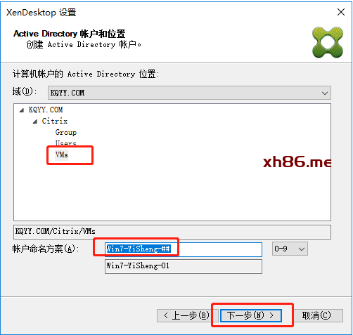 存放在VMs的OU下,因为我们在这个OU下挂有UPM策略,为计算机命名,最后面要加上两个#号,代表计算名编号