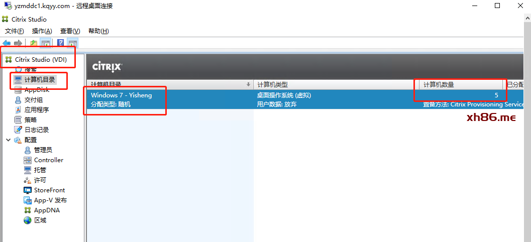 这时我们来到DDC,刷新一下计算机目录,也可以看到自动生成一个同样名字的计算机目录,里面也有5台虚拟桌面