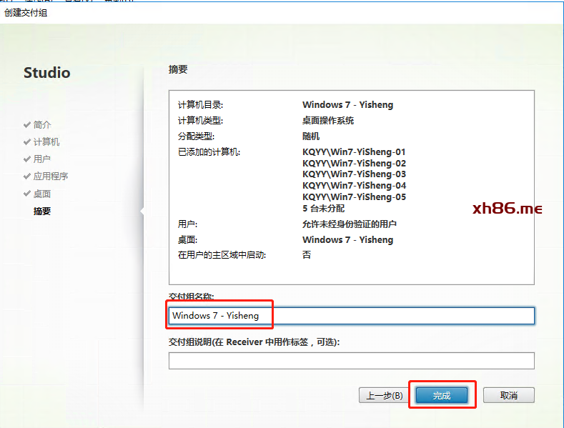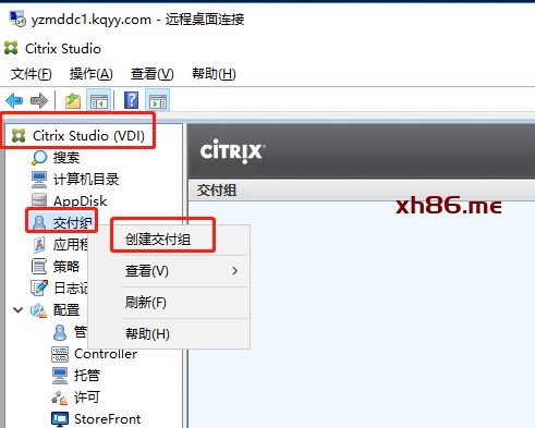 虚拟桌面创建好了,这时我们需要将设备交付出去,右键交付组,创建交付组