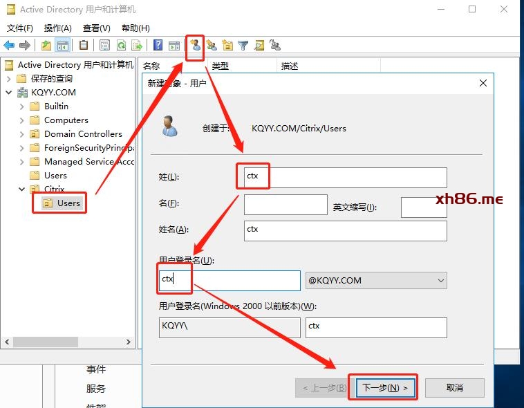 下图我们创建的CTX帐号将做为Citrix的管理员帐号