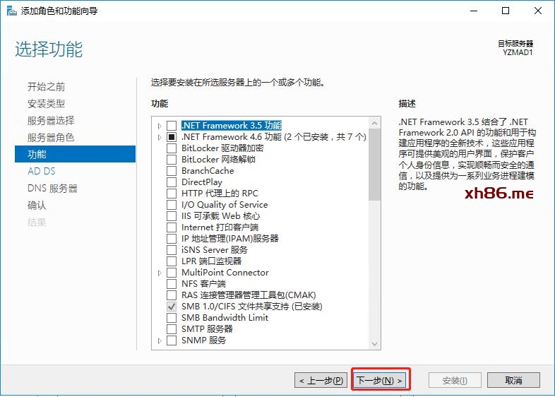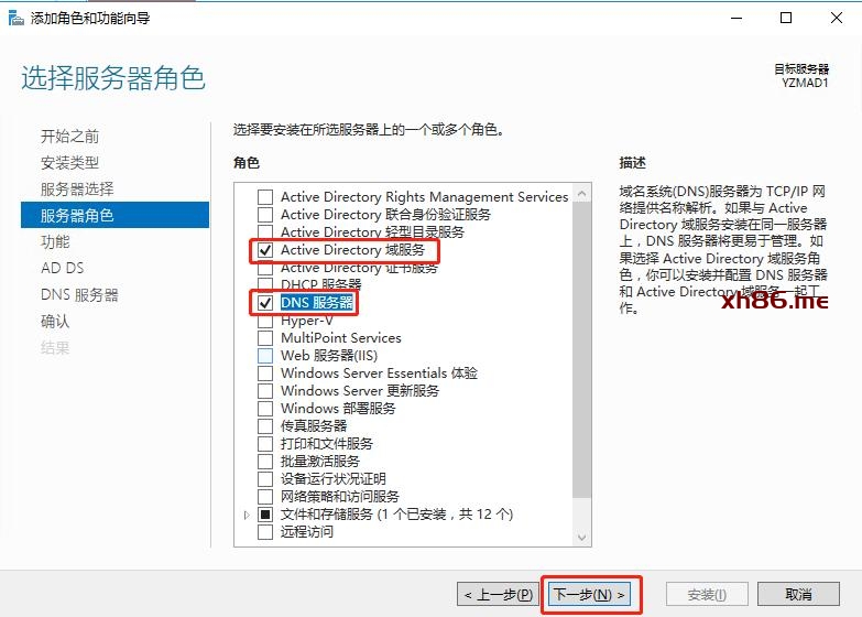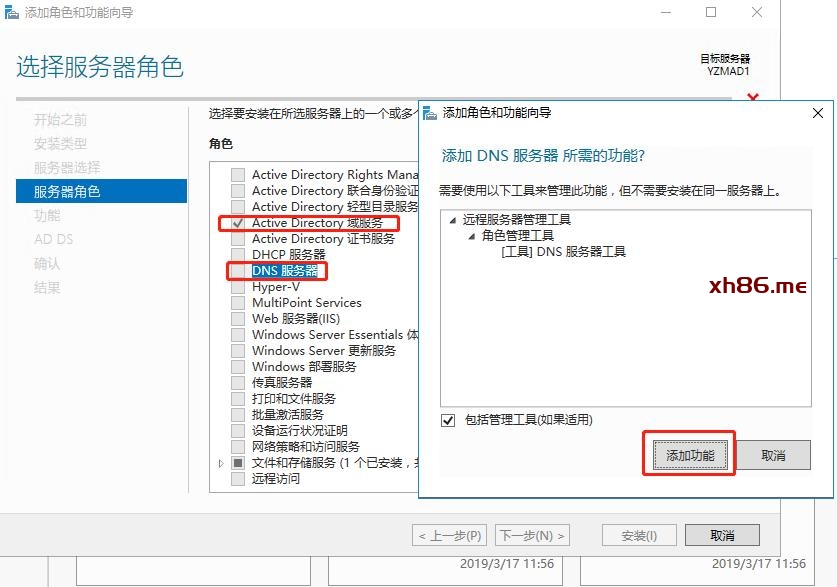 钩选“AD域服务和DNS服务器”,期间DNS会弹出一个窗口,选择添加功能: