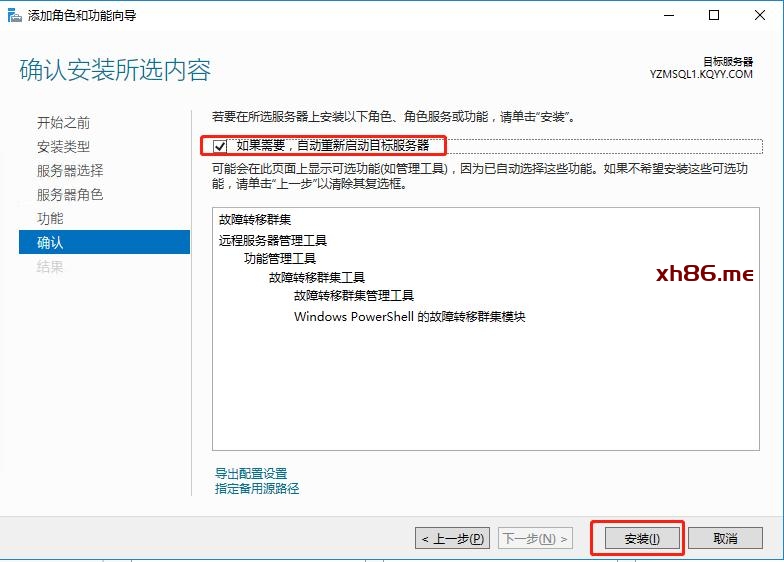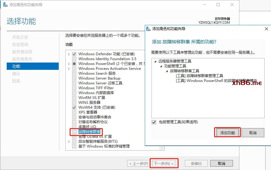 选择“故障转移群集”,在弹出的向导中点击添加功能,然后下一步